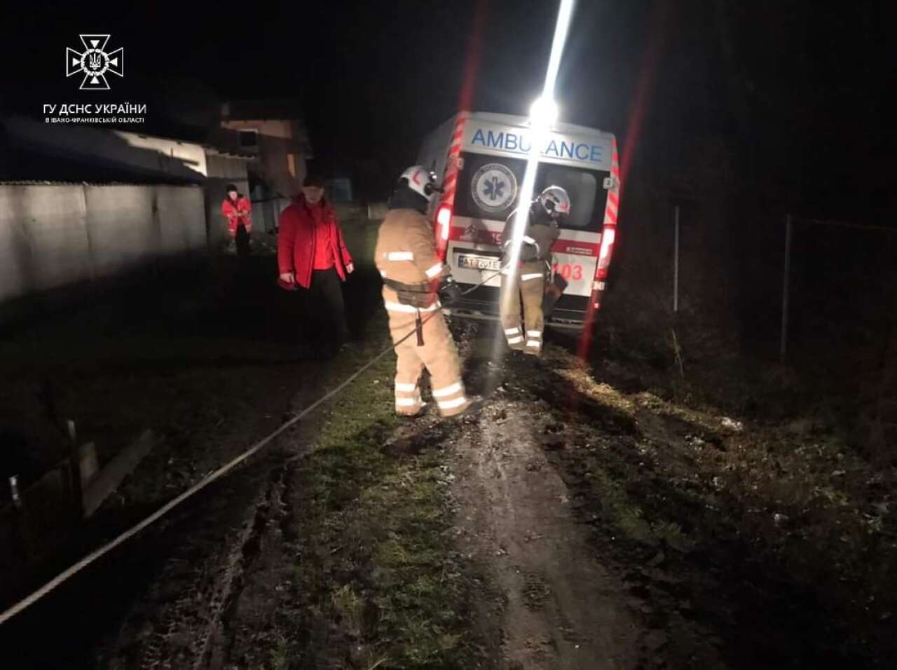 3 січня о 00:13 до Служби порятунку надійшло повідомлення про те, що в селі Рашків Городенківської ТГ Коломийського району автомобіль екстреної медичної допомоги з’їхав у кювет з грунтової дороги та не може продовжити рух.