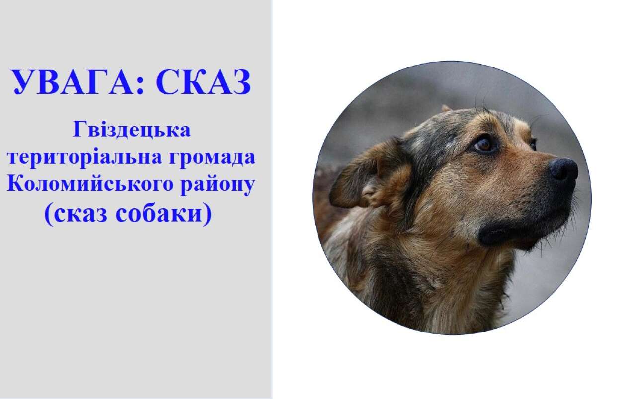 Івано-Франківською регіональною державною лабораторією Держпродспоживслужби встановлено сказ домашньої собаки в одному з населених пунктів Гвіздецької територіальної громади Коломийського району Івано-Франківської області. В ході епізоотичного розслідування встановлено, що кілька тижнів тому собака мала безпосередній контакт з дикою твариною (лисицею), яка нанесла покус домашній тварині.