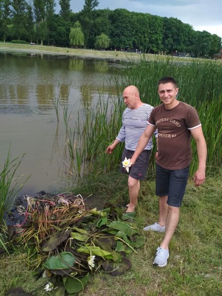 Комісарук Сергій та Зарубін Віталій посадили на водоймі саджанці лілії.