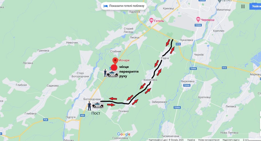 Також з метою інформування та для об’їзду виставлено чотири пости на трасі Н-09 «Мукачево -Івано-Франківськ-Львів» (один із сторони Івано-Франківська, а інший – Надвірної; також зі сторони Богородчан та обласного центру).