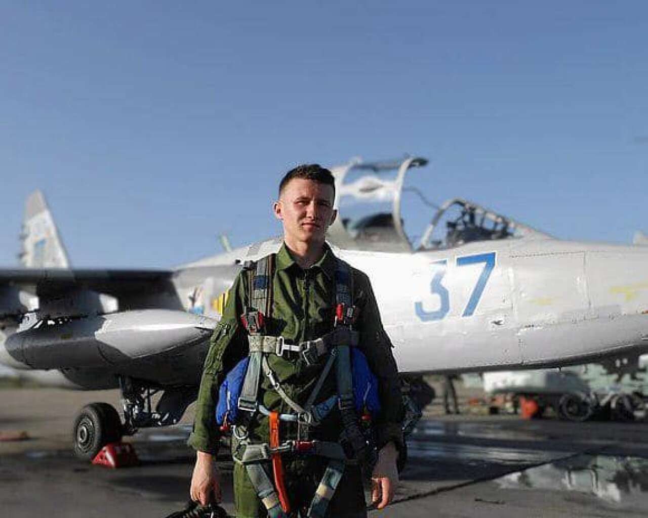 На першій світлині - Олександр Кукурба біля бойового штурмовика Су-25