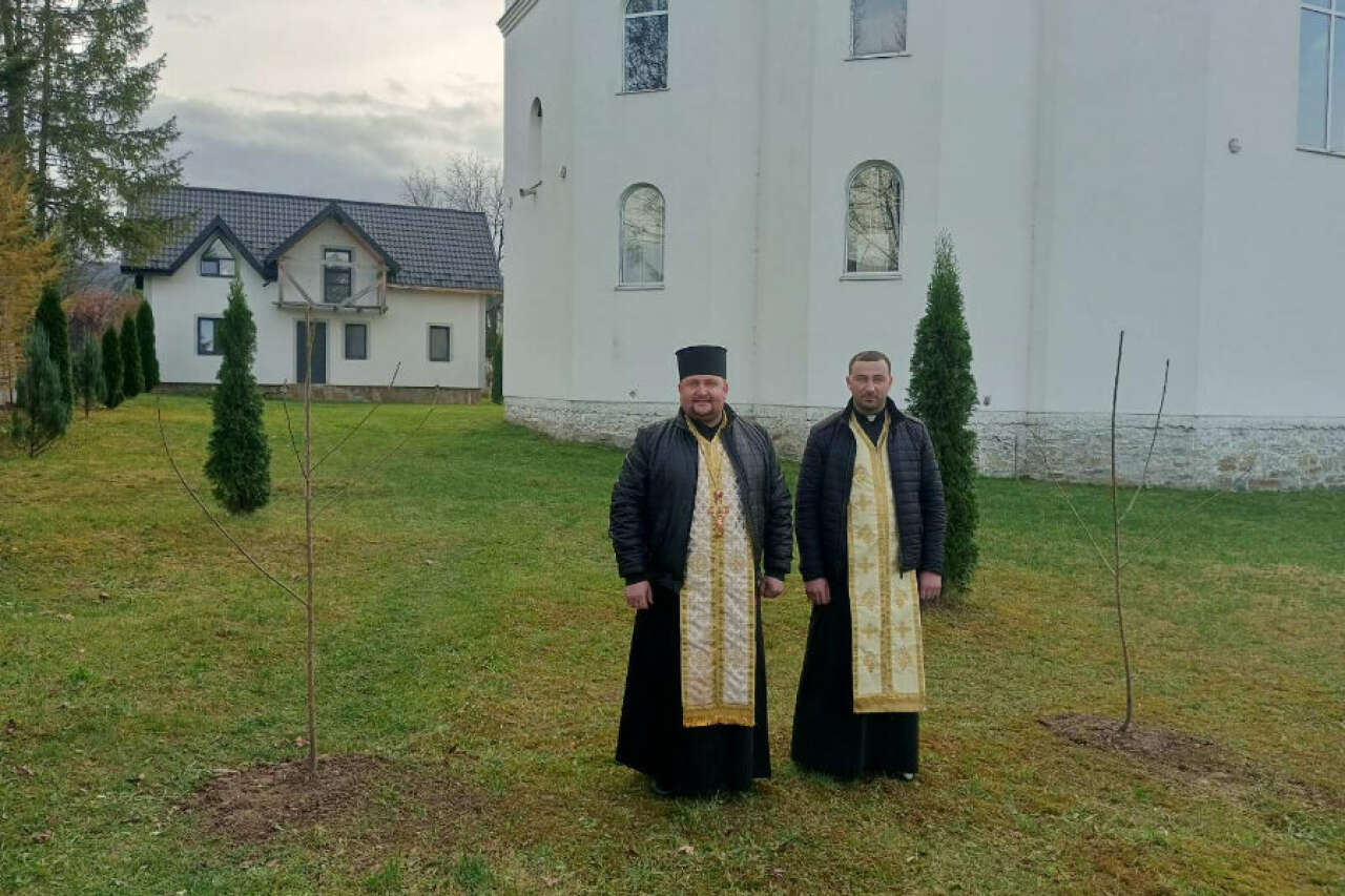 Опісля отці і парафіяни взялися активно висаджувати саджанці груш та черешень на території храму.