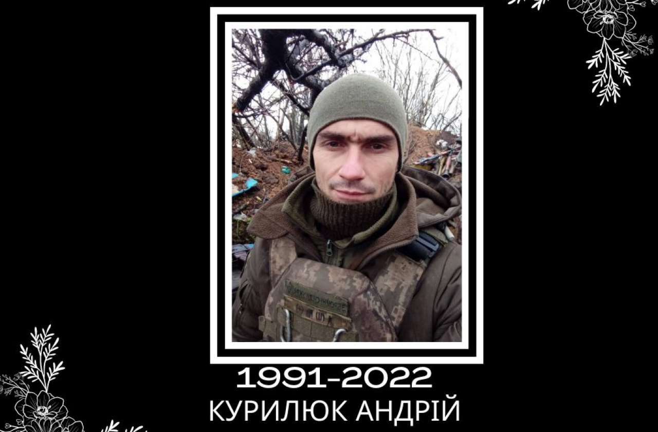 24 листопада в Бахмутському районі на Донеччині загинув житель с. Рудники, старший солдат стрілецького взводу Курилюк Андрій Васильович 1991 року народження. Сумну звістку повідомили на сайті Заболотівської громади.