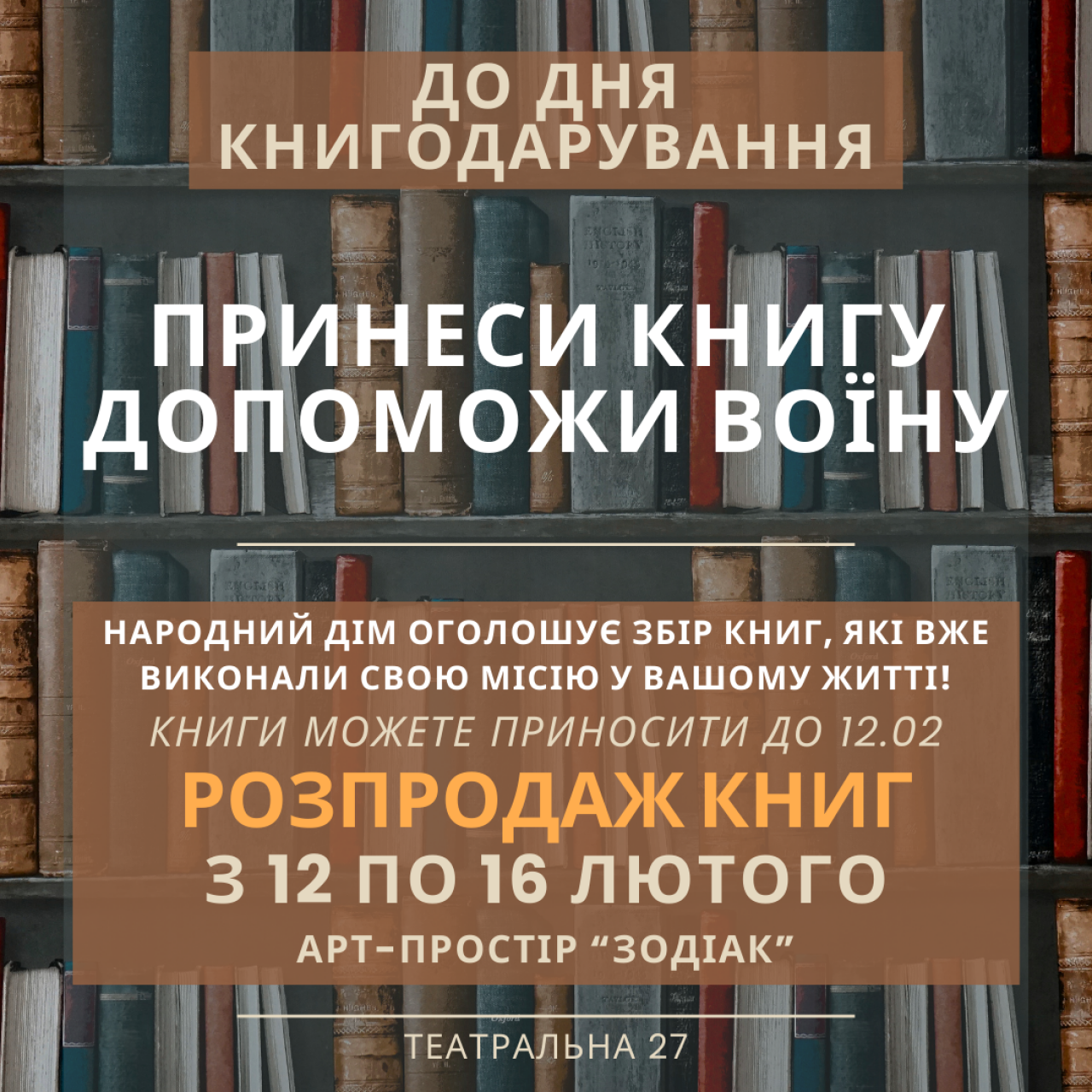 А з 12 по 16 лютого - буде РОЗПРОДАЖ в арт-просторі «Зодіак» ваших книг аби всі виручені кошти спрямувати на допомогу воїнам 79 окремої гірсько-штурмової бригади!