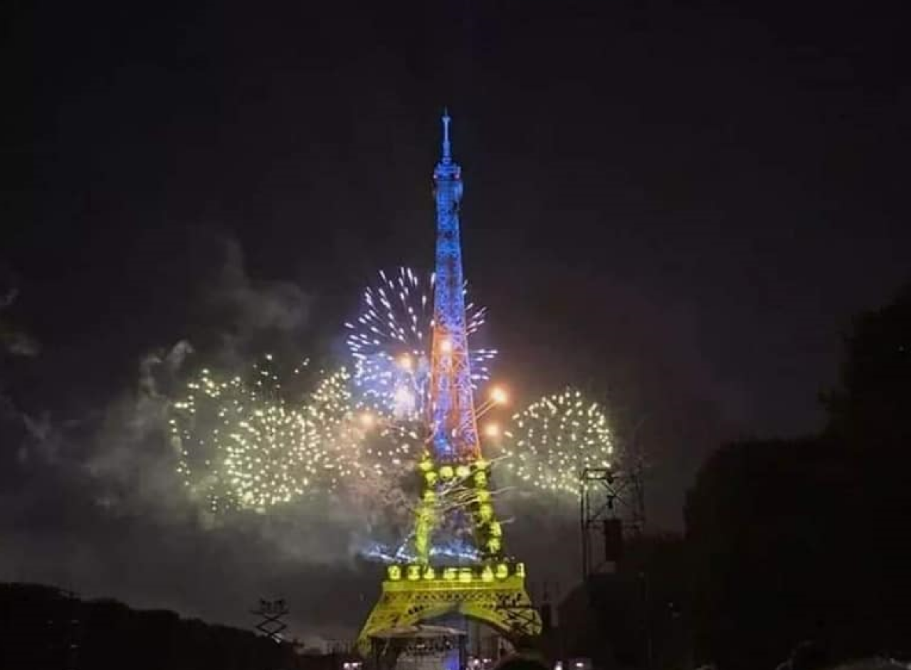 Ейфелеву вежу підсвітили кольорами Прапора України.