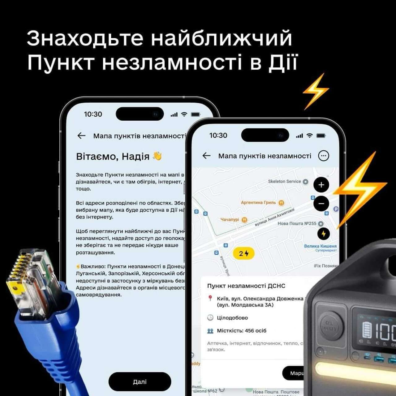 Знайти найближчий Пункт незламності, перевірити, чи є там усе необхідне, та побудувати маршрут тепер можна за кілька кліків — у Дії.