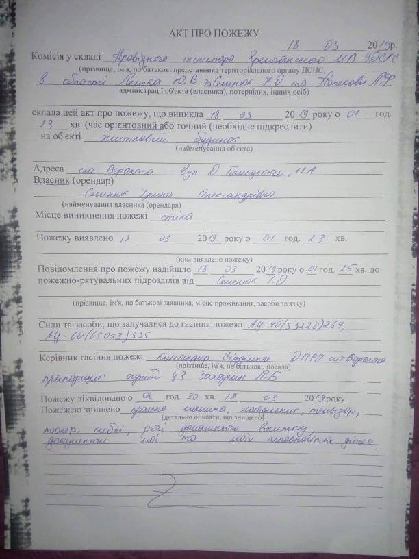 "ДРУЗІ! Ніколи не писала таких постів, але сталась трагедія у моєї сусідки і коліжанки Семенюк Ірини Олександрівни - вщент згорів будинок, в якому вона проживала зі своїми двома маленькими донечками.