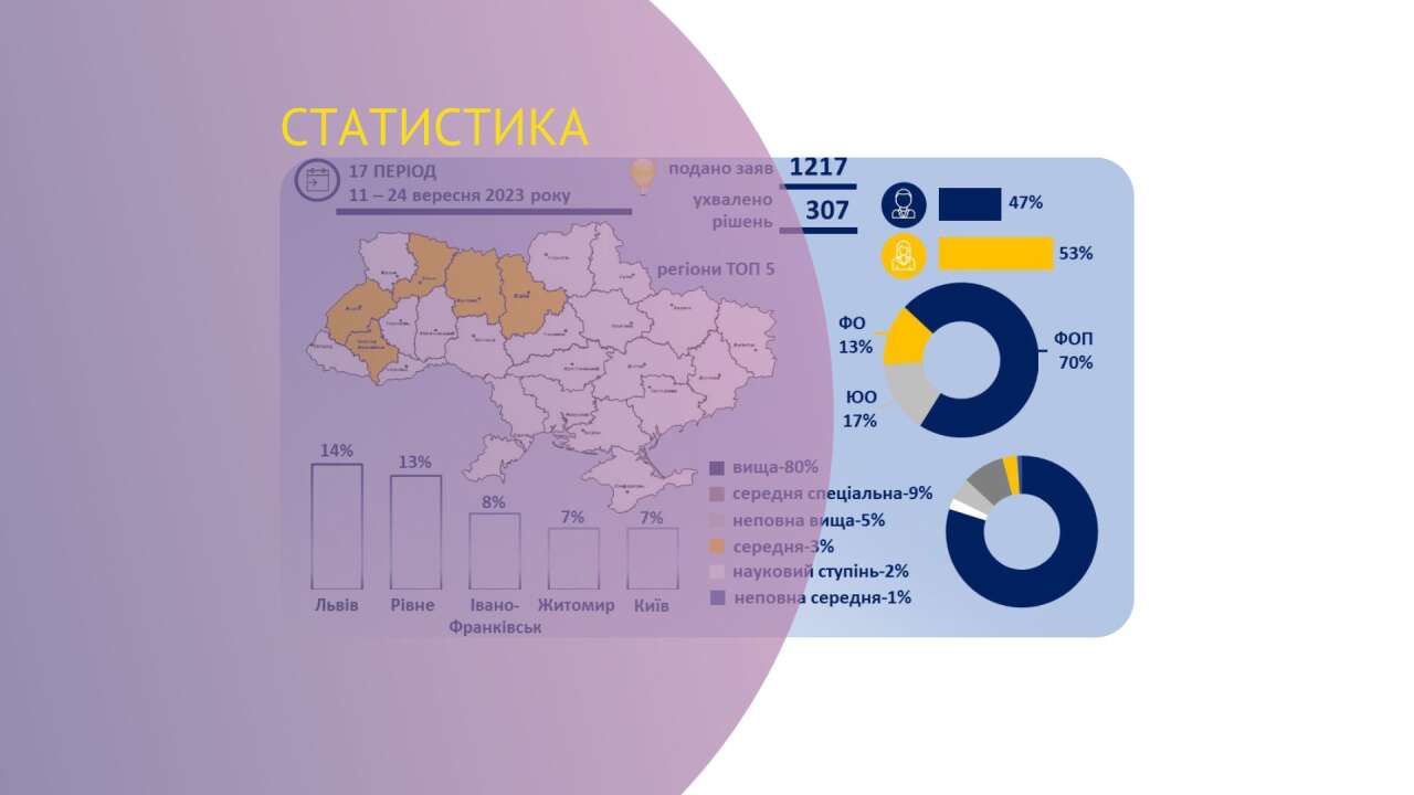За результатами сімнадцятого періоду подачі заяв на отримання мікрогрантів Івано-Франківська область знову у трійці лідерів серед регіонів з найбільшою кількістю прийнятих Державним центром зайнятості позитивних рішень, а за підсумками січня-вересня 2023 року наша область у п’ятірці лідерів за загальною кількістю отримувачів мікрогрантів.