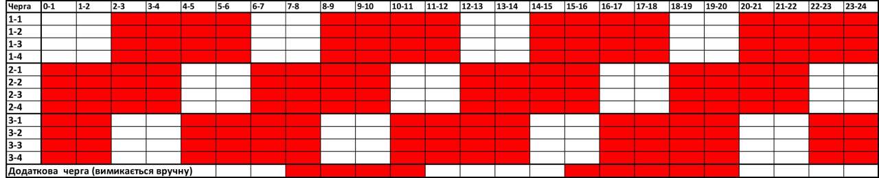Також, для зменшення навантаження на мережу в години пікового навантаження, до вимкнення буде застосована 4 черга.