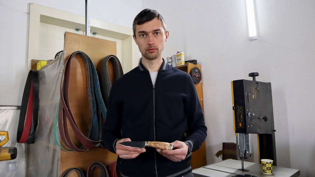 Знайомтесь, це - Олексій з Краматорська. Він відновив свій бізнес у нашій громаді. Тепер оригінальні ножі виготовляють у Коломиї. І це хороший приклад того, як можна допомагати нашій державі – продовжувати робити те, що вмієш та підтримувати економіку України.