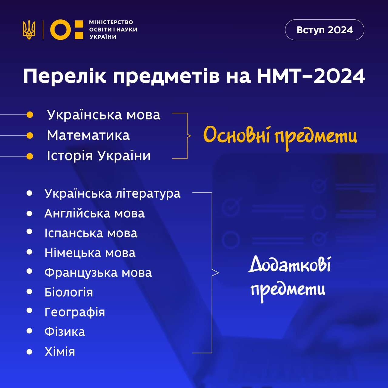 МОН затвердило, що цьогоріч національний мультипредметний тест проведуть з 14 травня до 19 липня. Вступники складатимуть іспит із чотирьох предметів, три з яких визначено, а один — на вибір.