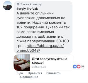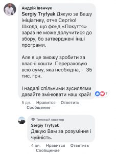 "Мені дуже сподобалася ініціатива директора фонду "Карітас Коломия" о. Сергія Триф’яка по спільному збору коштів на лікарняні ліжка. Я вирішив теж долучитися і перерахував ту суму коштів, якої не вистачало. Ця ініціатива – це приклад того, про що я неодноразово наголошую: тільки спільними зусиллями ми здатні змінити наше місто", - наголосив він у коментарях до згаданої вище публікації.