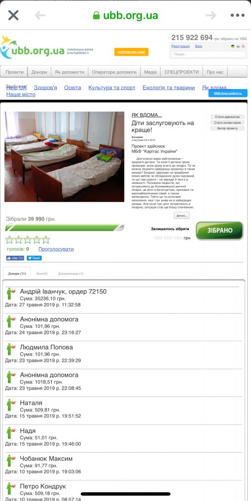 флеш-мобу зі збирання коштів на дитячі ліжка для медустанови, загалом потрібно було зібрати майже 40 тис. грн.
