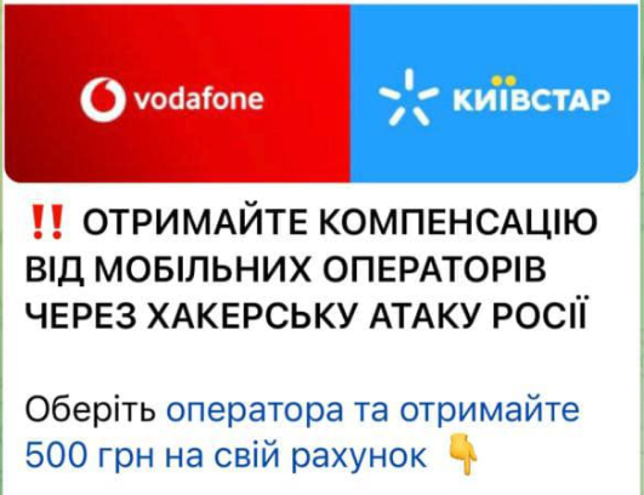 У зв’язку з масштабним збоєм мережі мобільного оператора «Київстар» у різних месенджерах одразу активізувались пройдисвіти. Від імені компанії вони обіцяють компенсації – від 200 до 500 грн.