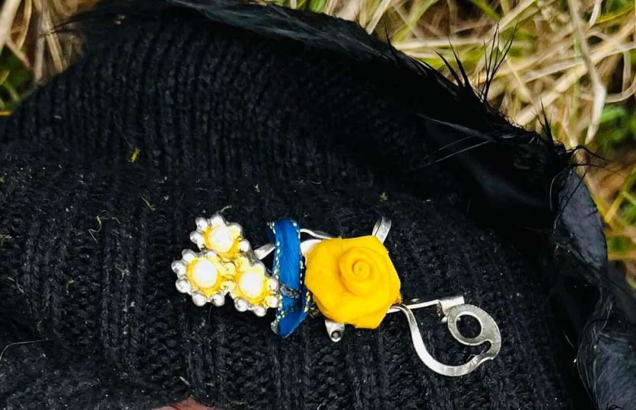 Була одягнена у балонову куртку чорного кольору з капюшоном, светр в чорно-білу вертикальну смугу, штани чорного кольору, балонове взуття зелено-чорного кольору, шарф зеленого кольору, шапку чорного кольору з брошкою у вигляді квітки.
