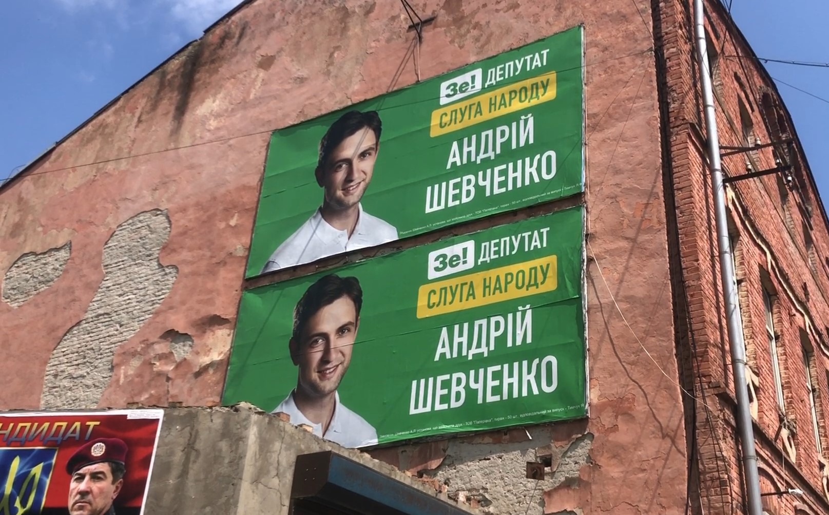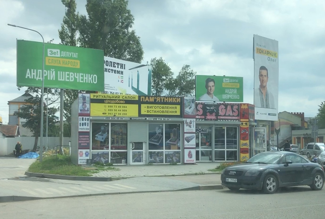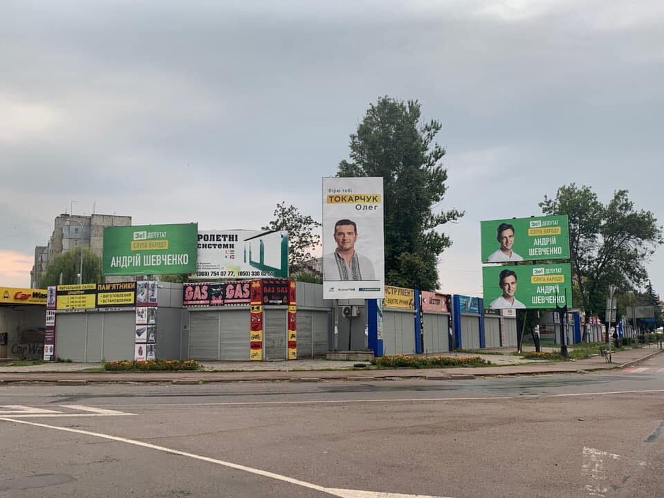 Та все ж лідером з кількості агітаційних бордів та сітілайтів на 88 окрузі залишається 27-річний кандидат від "Слуги народу", рідний брат власників "Буковелю" Олександра та Віктора Шевченків, бізнес-партнерів олігарха Коломойського, - Андрій Шевченко.