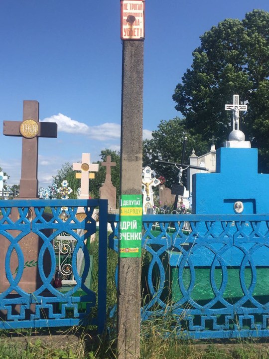 Тільки нещодавно на окрузі з’явилися борди з його обличчям, досі його персона ретельно ховалася за брендом партії "Слуга народу". На біг-бордах та плакатах, розвішаних та розклеєних повсюди (навіть на кладовищах) на Коломийщині та Городенківщині, не було його фото.