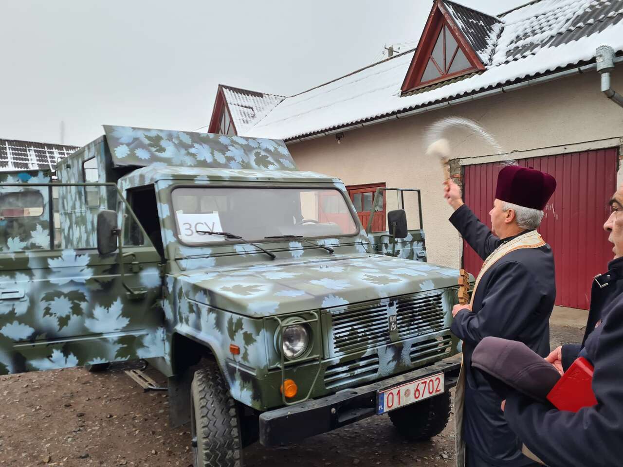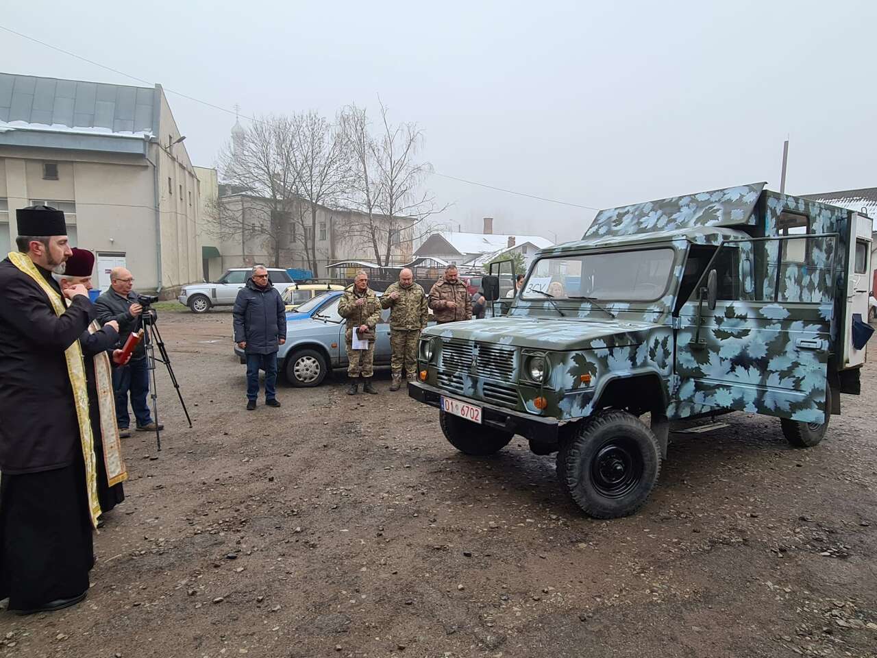 Священники Теодор Оробець та Микола Марусяк освятили автомобіль для військових.