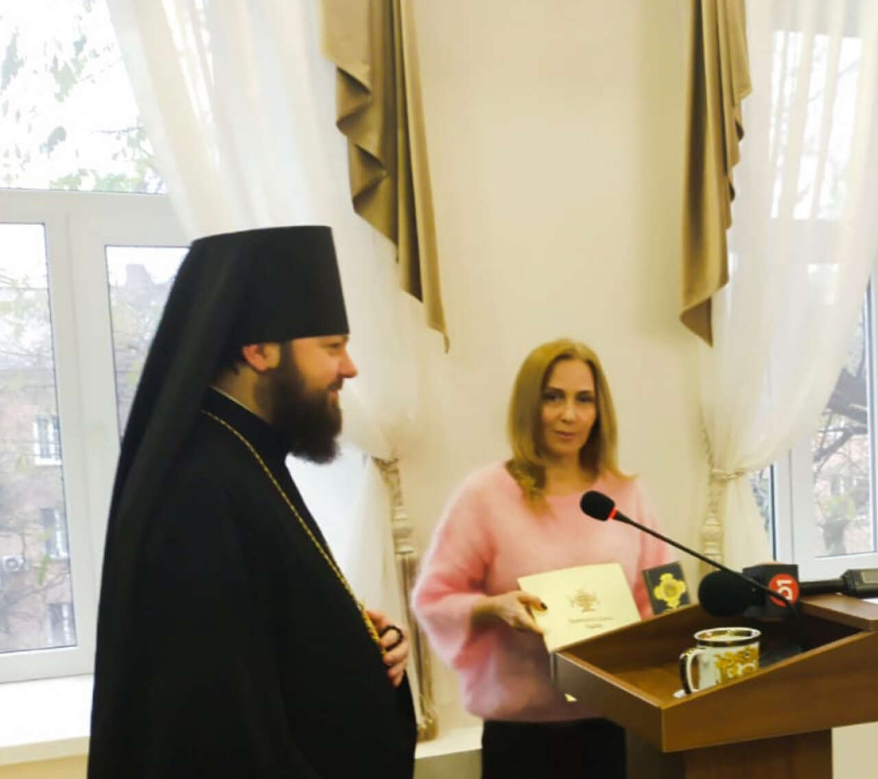 Від імені Митрополита Київського і всієї України Епіфанія відзнаки вручив Архімандрит Михайлівського Золотоверхого монастиря отець Феодосій.