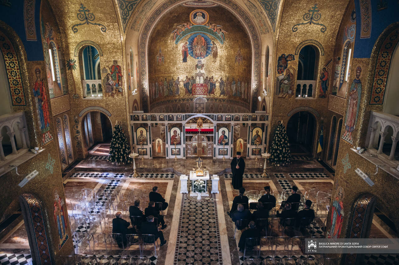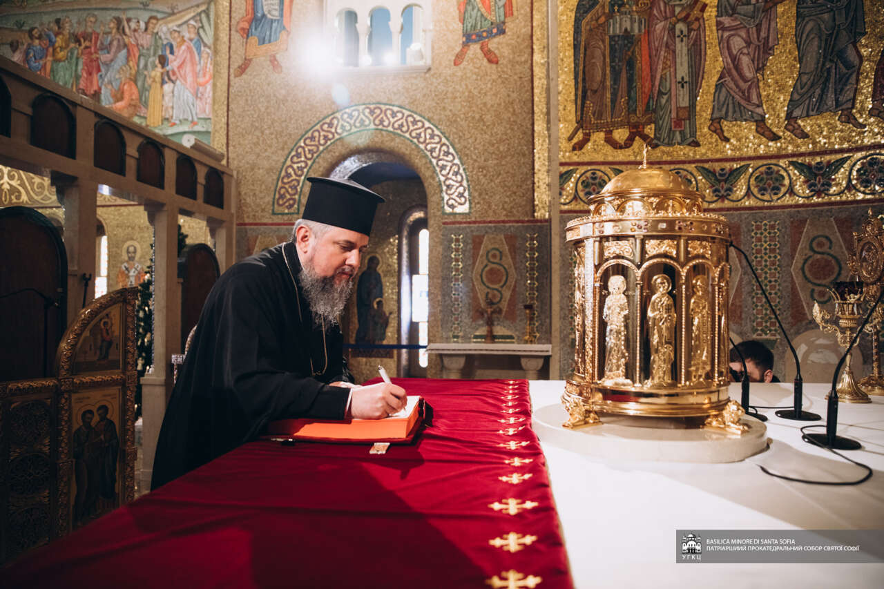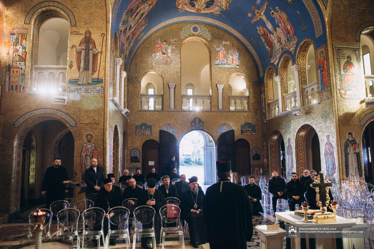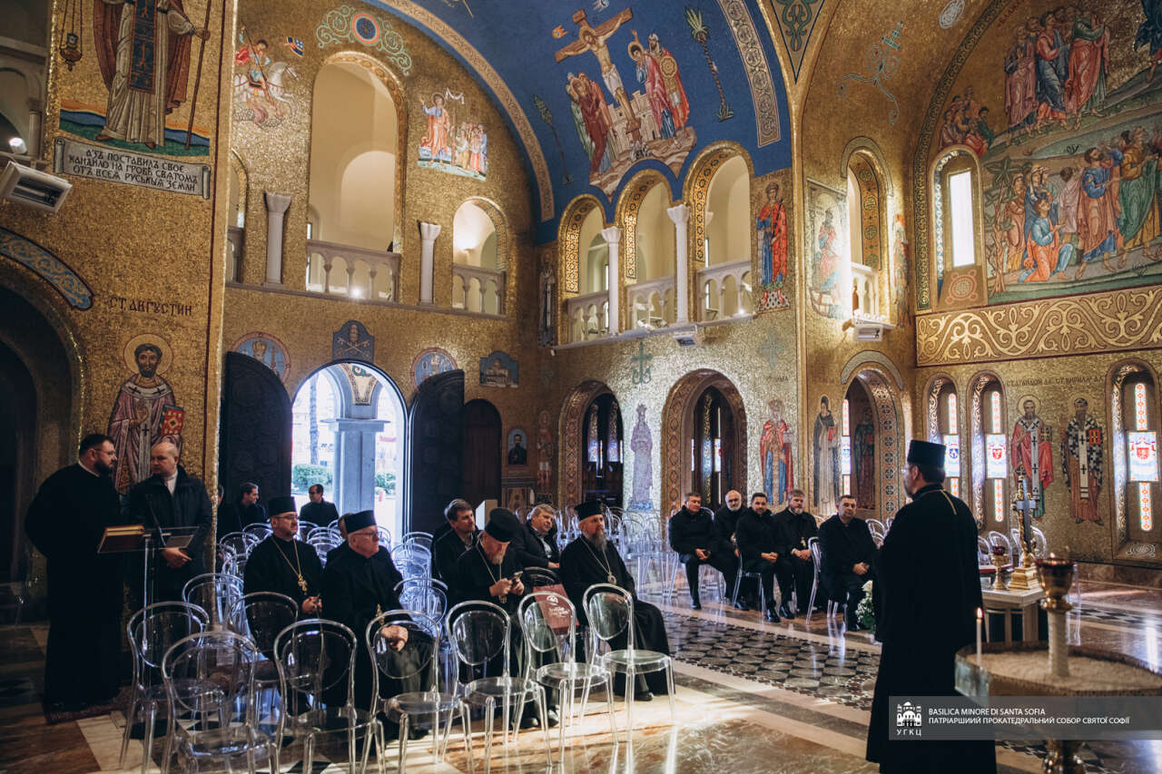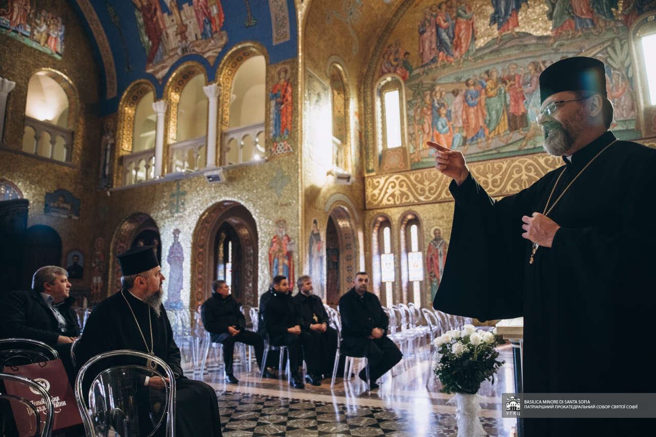 Вітаючи членів делегації у прокатедральному соборі Святої Софії в Римі, Блаженніший Святослав розповів історію заснування цієї святині, про її історичне значення для українського народу та душпастирське служіння в сучасних обставинах. Глава УГКЦ наголосив, що «цей собор завжди був символом єдності „в розсіянні сущого“ українського народу, а в сучасних обставинах, зокрема після повномасштабного російського вторгнення, став важливим духовним і гуманітарним центром для багатьох біженців з України. Саме звідси щотижня вирушає гуманітарний вантаж у різні регіони України».