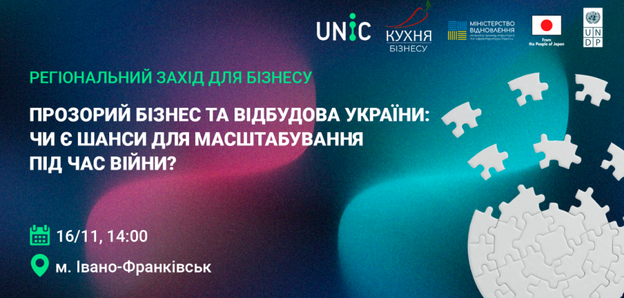Представників бізнесу запрошують відвідати офлайн-захід на тему «Прозорий бізнес та відбудова України: чи є шанси для масштабування під час війни?», який відбудеться 16 листопада у м. Івано-Франківськ.