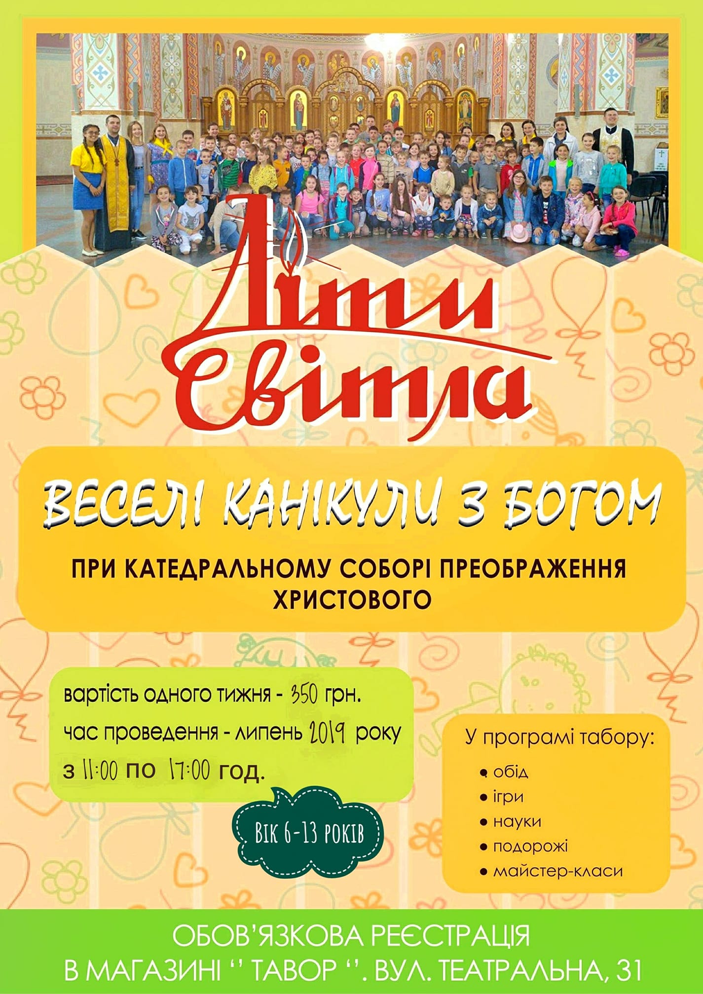 Молодіжна християнська організація "Діти Світла" запрошує діток від 6 до 13 років на "Веселі канікули з Богом" при Катедральному соборі Преображення Христового.