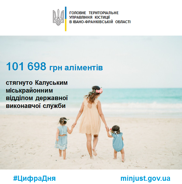 Цього разу Калуським міськрайонним відділом держвиконслужби стягнуто 101 698 грн аліментів з боржника, повідомляється на сайті Головного управління юстиції в області, пише Дзеркало медіа.