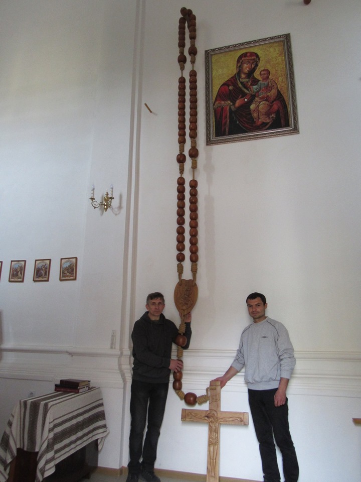 Прикарпатські майстри 47-річний столяр Дмитро Фаринович та 37-річний дизайнер Володимир Сандалович створили найбільшу дерев'яну вервицю в Україні.