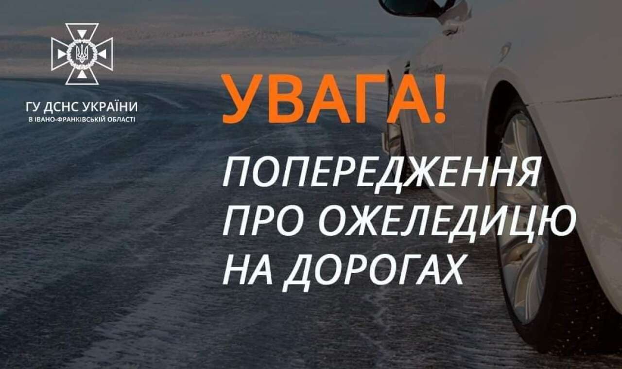Протягом доби 06 грудня на дорогах Івано-Франківської області збережеться ожеледиця. (1 рівень небезпечності, жовтий).