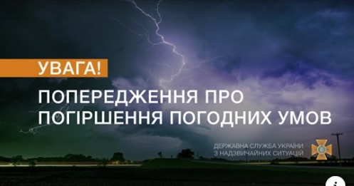 "Протягом доби 12 червня по області та місту очікується значний дощ, гроза, град, шквалисте посилення вітру 15-20 м/с. (НМЯ 1) 1 рівень небезпечності, жовтий", - йдеться у повідомленні рятувальників.