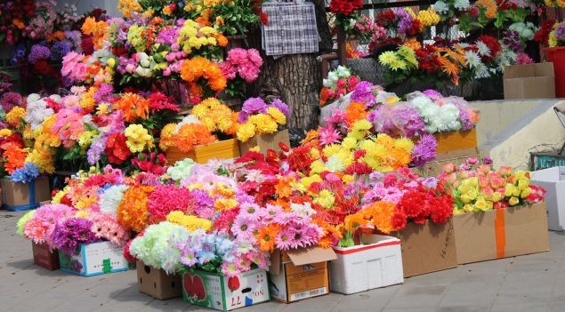Перед Великоднем в Івано-Франківську площа біля універмагу перетворюється на стихійний ринок з кольоровими вінками.