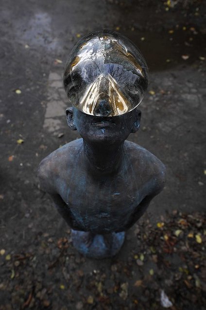 Ця дивовижна бронзова скульптура являє собою людину, яка дивиться вертикально в небо, а на її обличчі розташована величезна скляна крапля дощу, інформує