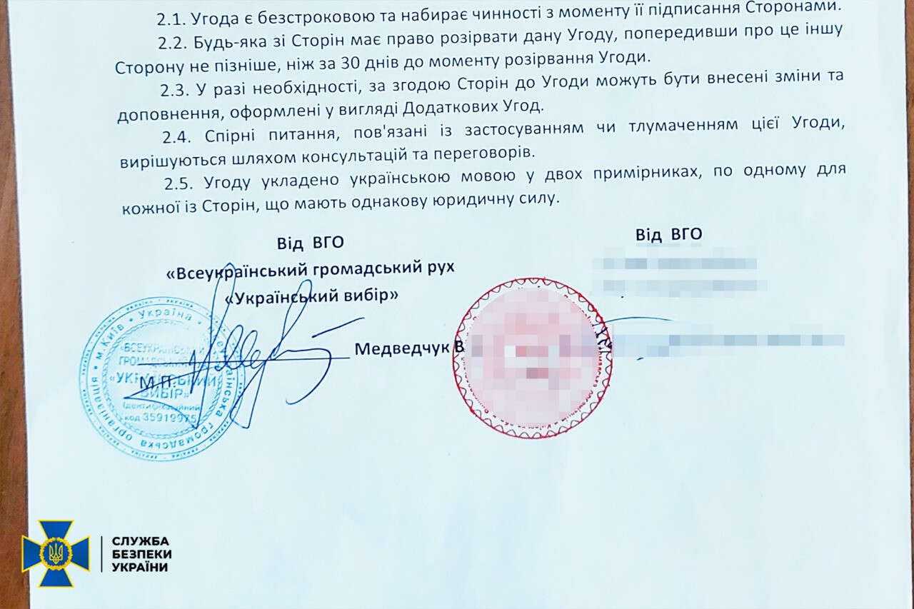 Домовленість між українськими та російськими учасниками передбачала використання створених на території рф та України громадських організацій та фондів для налагодження схеми надходження в Україну з російської федерації грошових коштів.