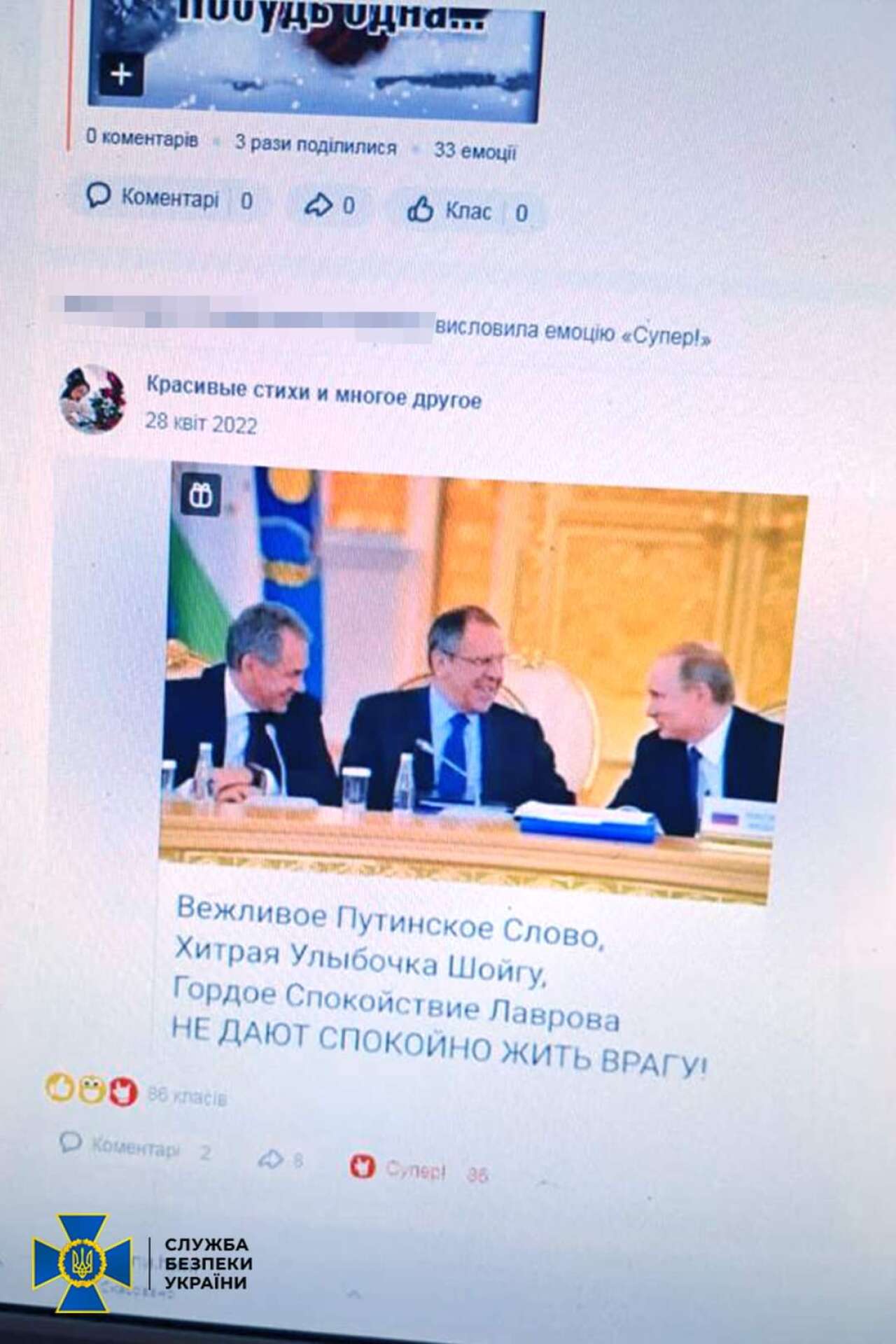 Слідчі СБУ встановили, що уродженка та мешканка Івано-Франківщини поширювала в соцмережі дописи, спрямовані на визнання правомірною збройної агресії російської федерації проти України.