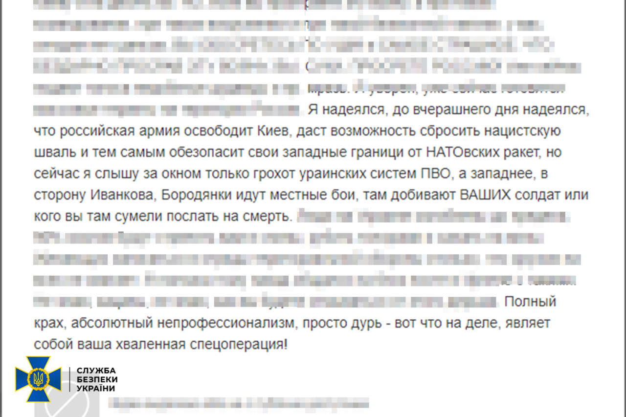 Кіберфахівці СБУ встановили, що під час окупації Бучі фігурант із родиною евакуювався в Івано-Франківську область. При цьому в соцмережі він шкодував, що росії не вдалося «звільнити Київ» за три дні та скинути «нацистський режим».