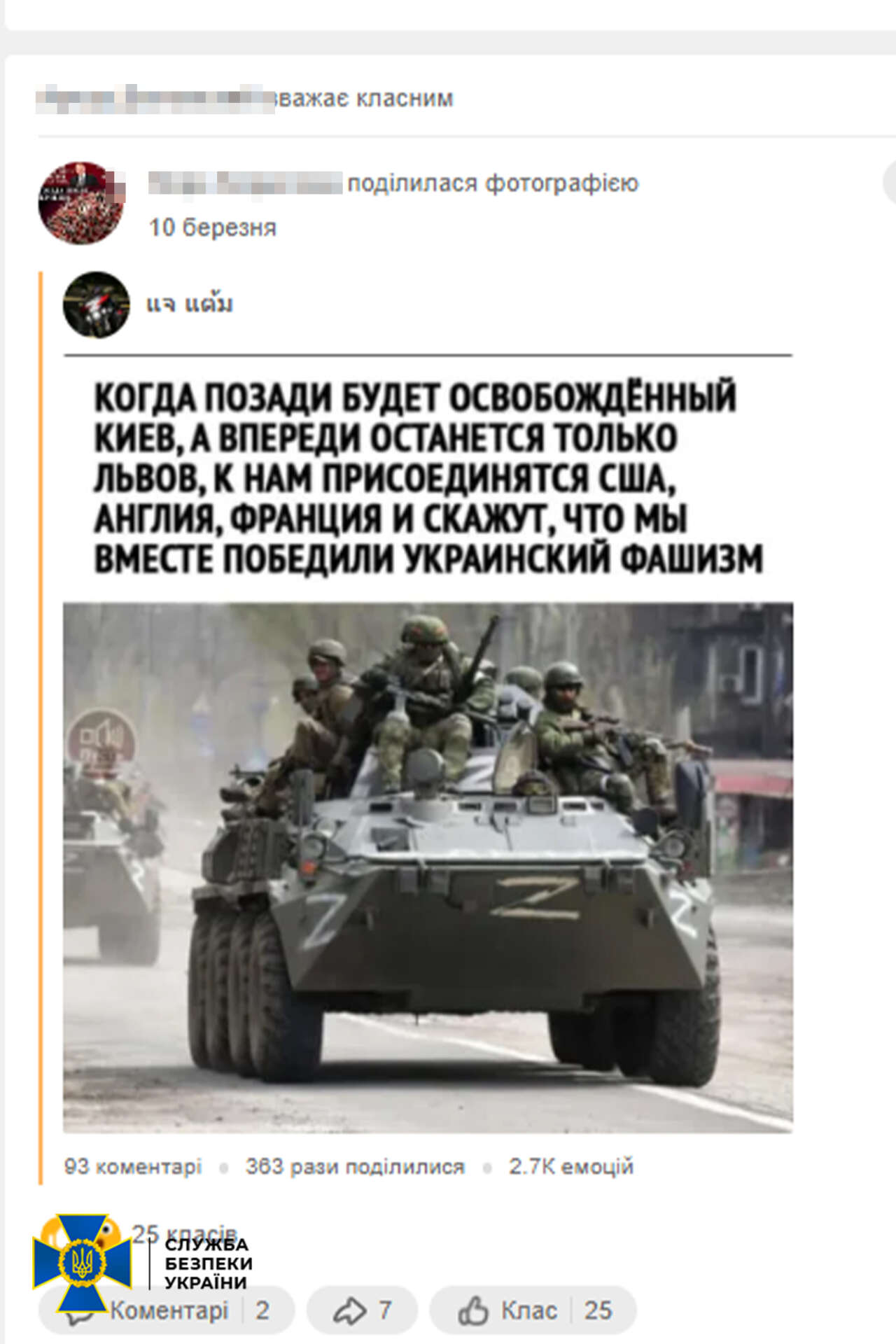 Щодо України та українців, а також країн, які підтримують нашу державу у боротьбі проти окупантів, фігурант публікував образливі й глузливі коментарі та меми.
