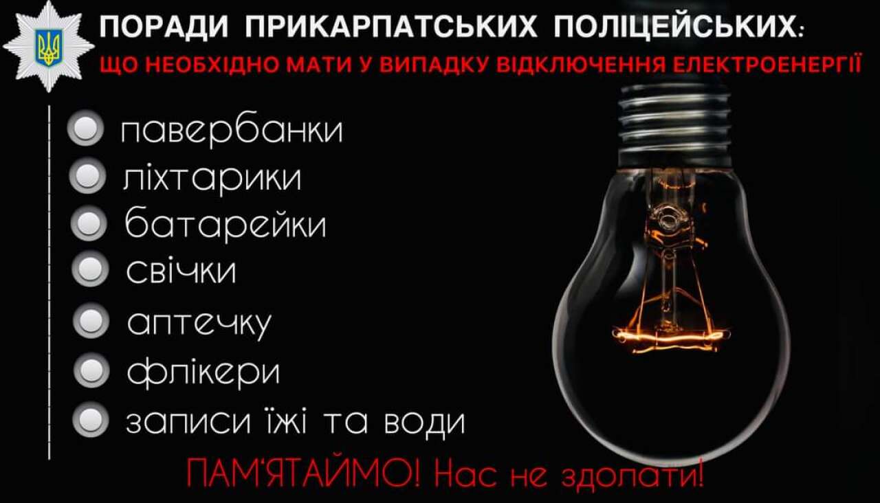 Що необхідно мати на випадок відключення електроенергії: поради від прикарпатських поліцейських