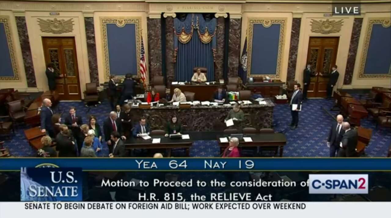 30-годинний термін закінчився, Сенат проголосував 64:19 за продовження дебатів щодо допомоги Україні, Ізраїлю та Тайваню на вихідних.