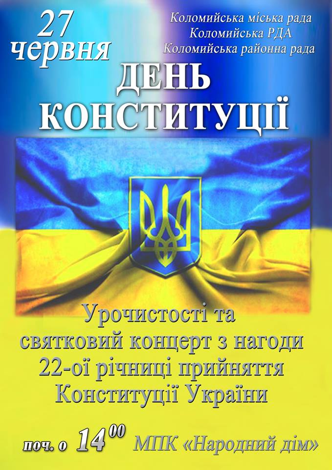 Сьогодні, 27 червня, в МПК "Народний дім" відбудуться урочистості і святковий концерт з нагоди 22-ої річниці Конституції України.