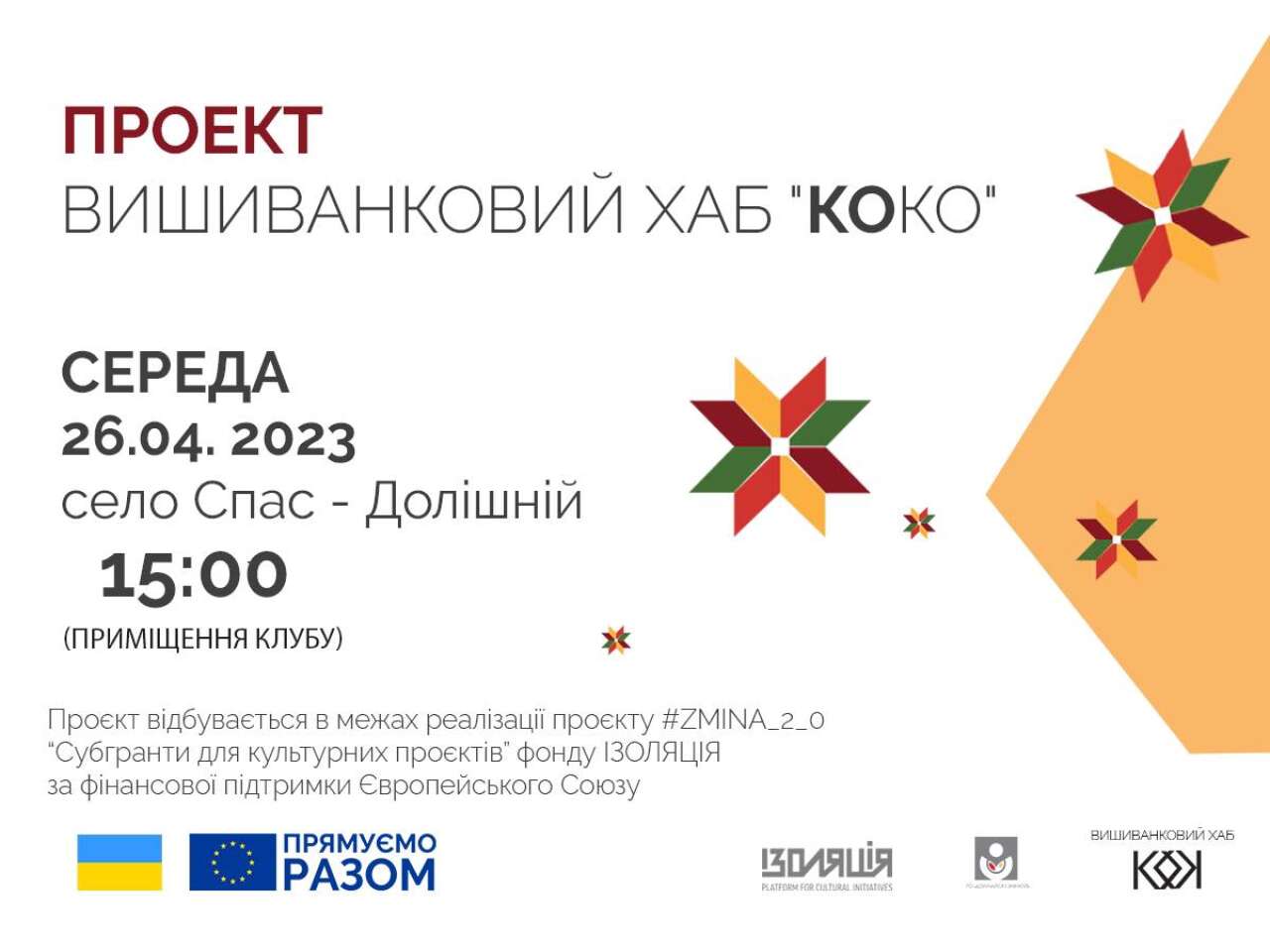 Проєкт відбувається в межах реалізації проєкту #ZMINA_2_0 “Субгранти для культурних проєктів” фонду ІЗОЛЯЦІЯ за фінансової підтримки Європейського Союзу.
