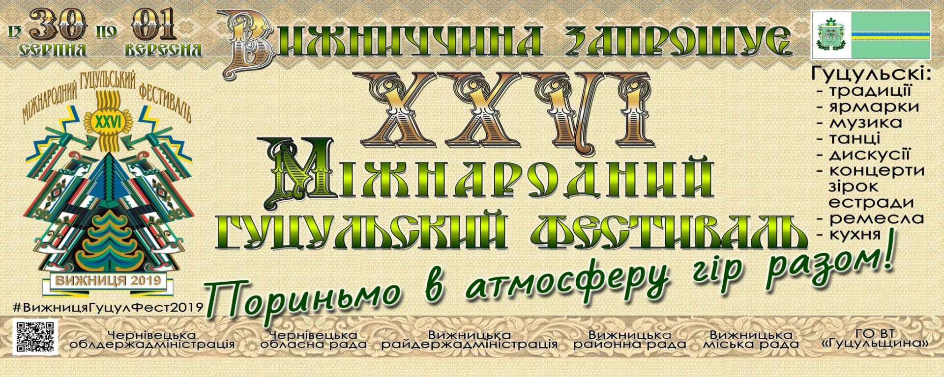 XXVI Міжнародний гуцульський фестиваль цьогоріч відбуватиметься в період 30 серпня – 1 вересня на Вижниччині.