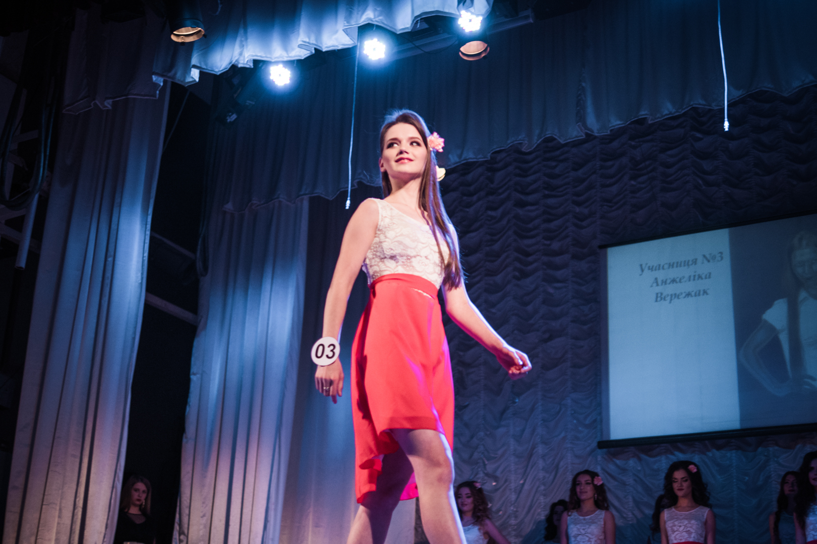 Прізвище - років, дівчина навчається у . Для неї це участь у конкурсі краси. Імя мріє про