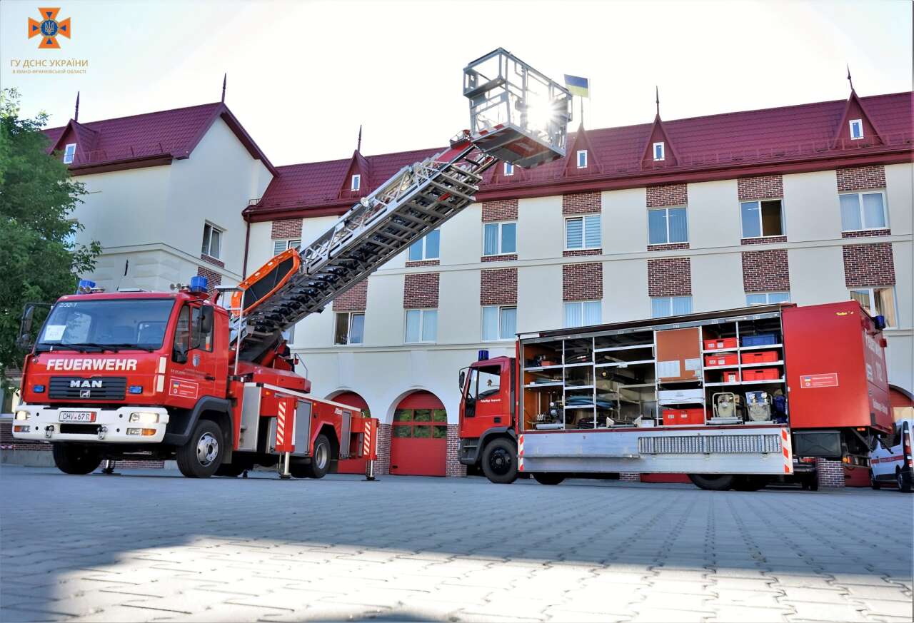 Пожежну автодрабину (Metz Aerials GmbH & Co. KG Karlsruhe) та автомобіль для підрозділу хімічного, біологічного та радіаційного захисту (IVECO 120E GW[-G) придбали рятувальники комуни Глініці (Нордбан) та міста Штраусберг (Німеччина), а допомогу в логістиці та отриманні Головним управлінням ДСНС в Івано-Франківській області надала Воєводська комендатура Державної пожежної служби в Кракові (Республіка Польща).