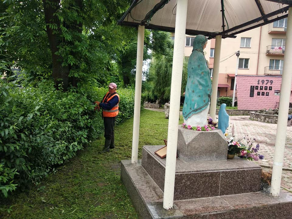 Коломийські комунальники продовжують впорядковувати міські сквери і парки.