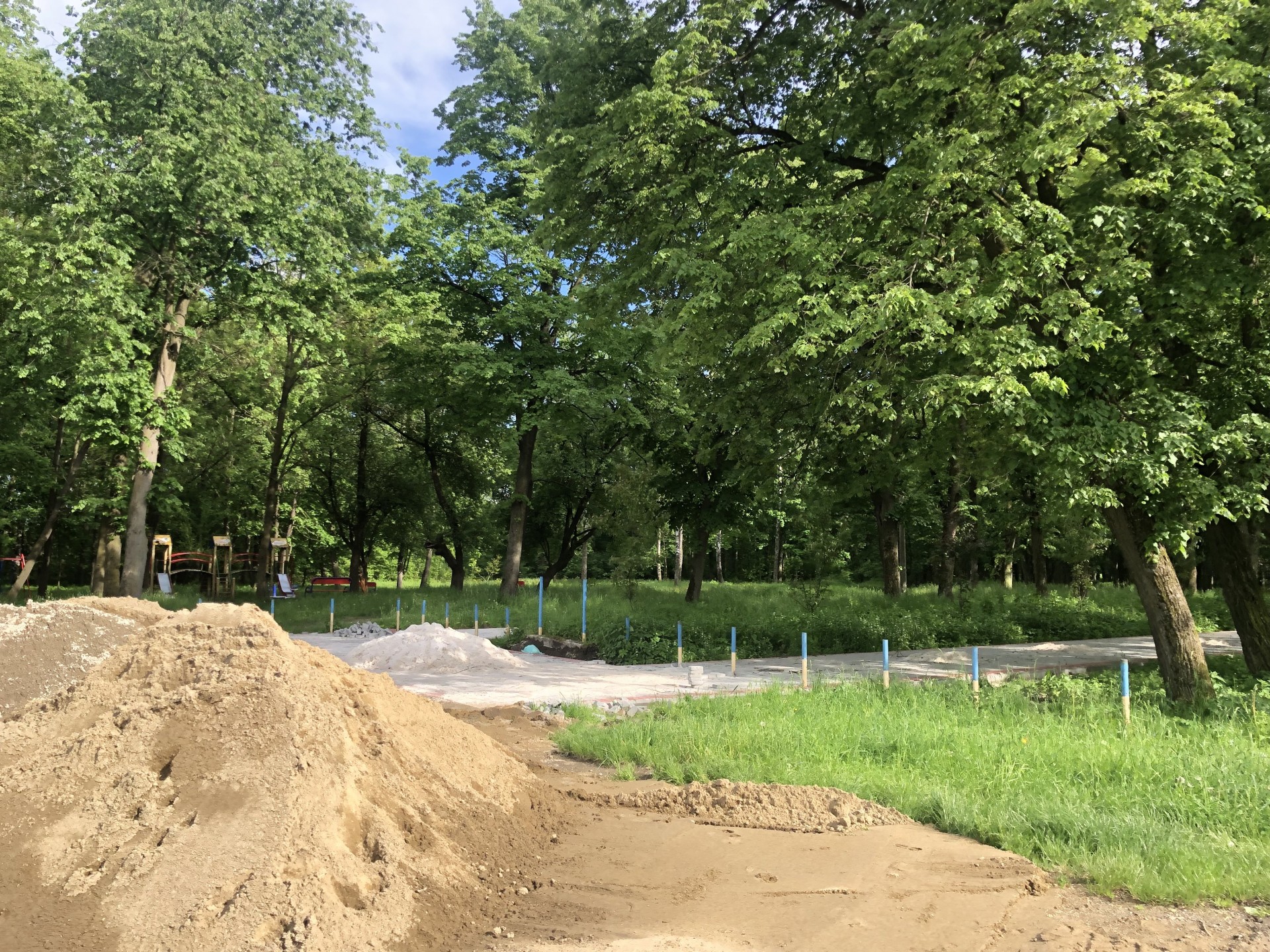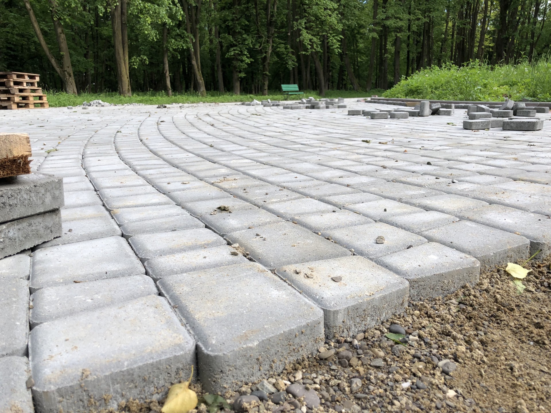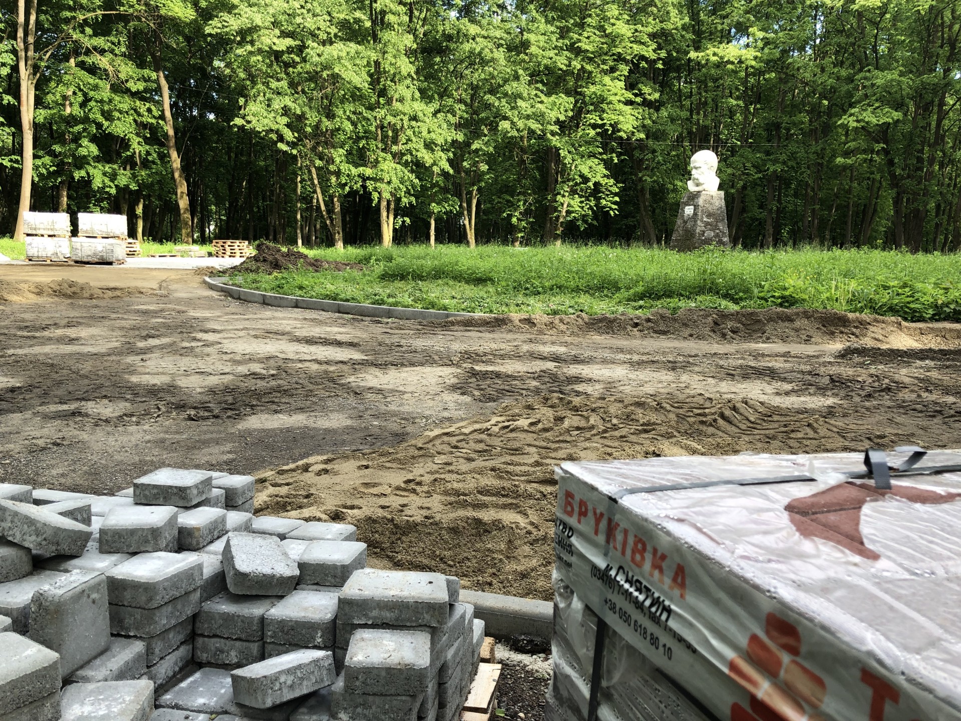 У парку Шевченка ремонтують пішохідні доріжки, та встановлюють бруківку.