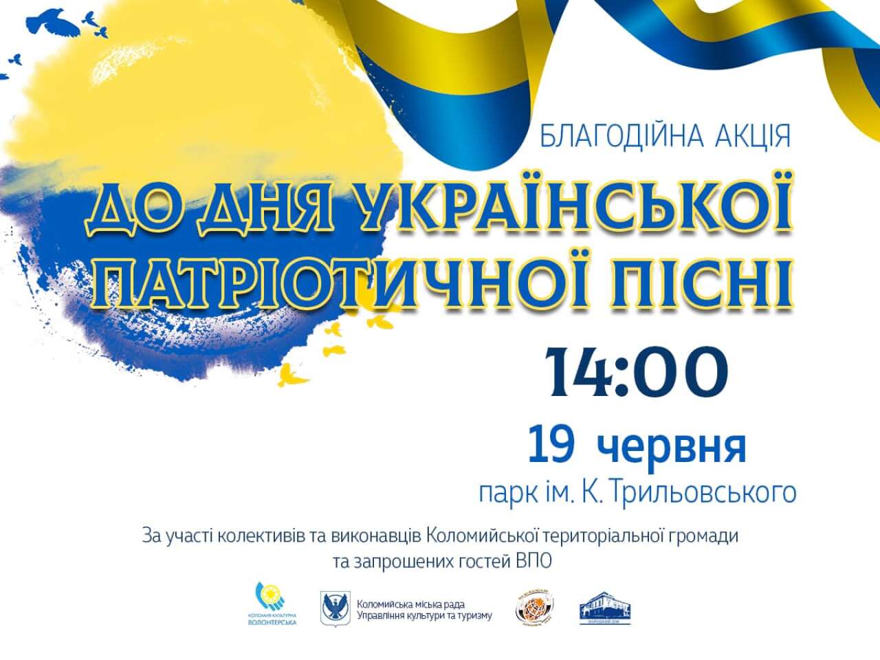 19 червня о 14:00 у парку імені Кирила Трильовського відбудеться благодійна акція до Дня української патріотичної пісні.