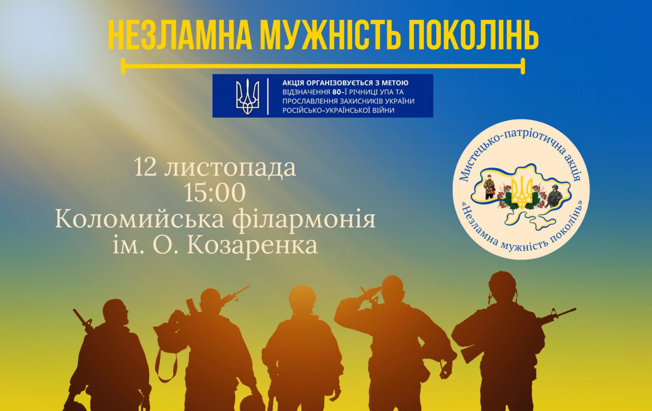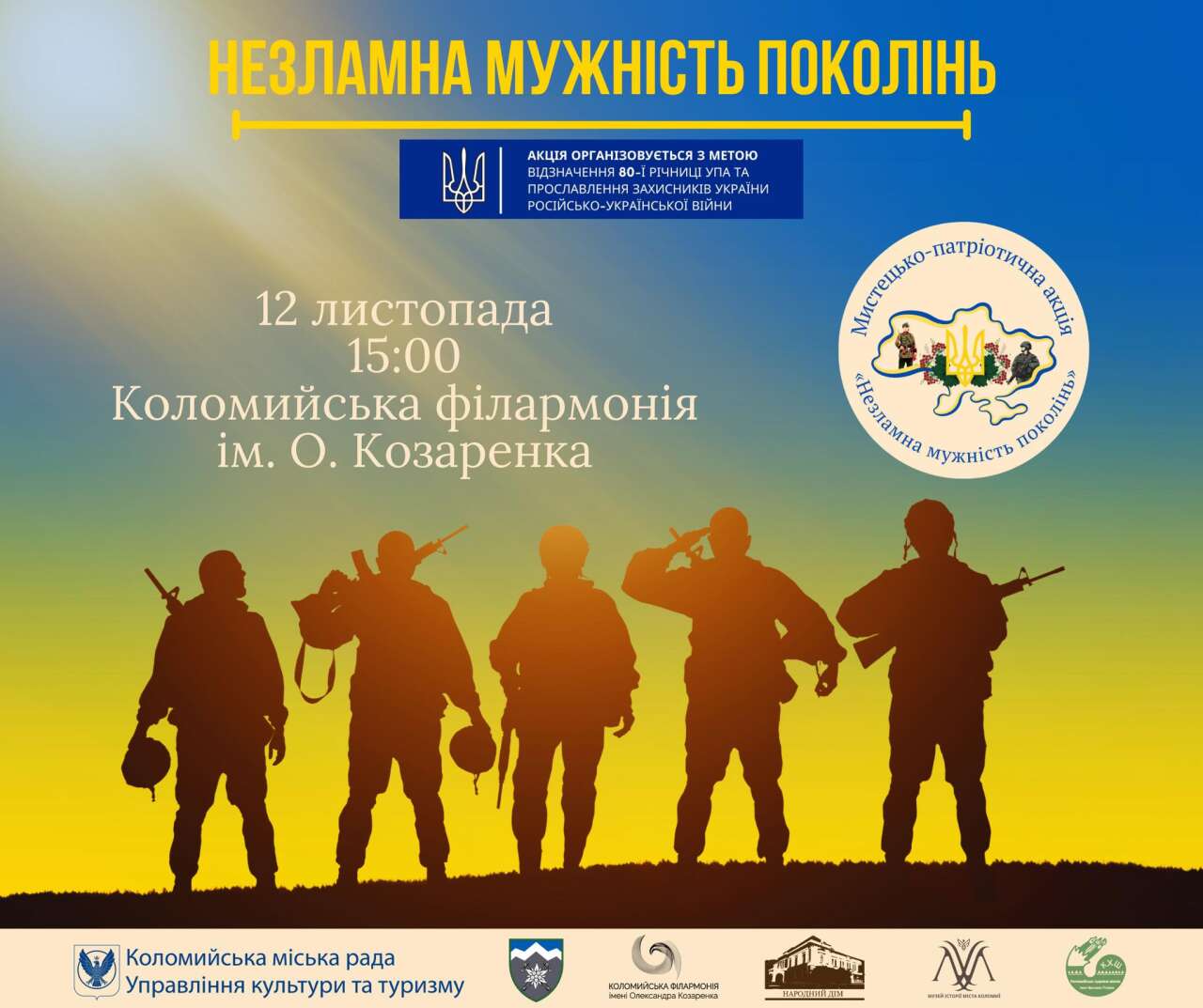 12 листопада о 15:00 коломиян запрошують долучитися до мистецько-патріотичної акції «Незламна мужність поколінь», приуроченій 80-й річниці створення УПА Карпатського краю та прославлення захисників України.