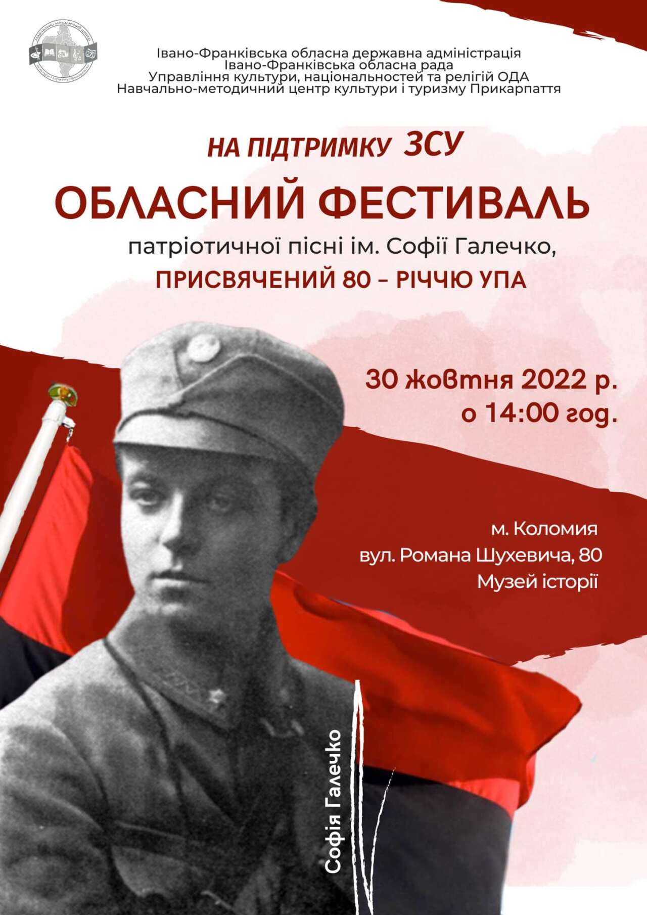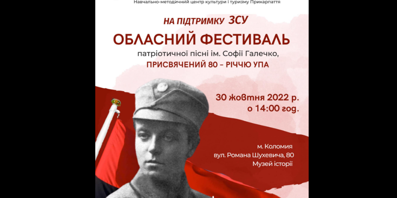 Вже цієї неділі, 30 жовтня, в Музеї історії міста Коломиї відбудеться обласний фестиваль патріотичної пісні імені Софіі Галечко, присвячений 80-річчю УПА