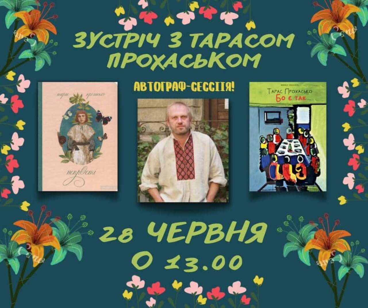 28 червня о 10:00 у краєзнавчій бібліотеці відбудеться зустріч з талановитим митецем, письменником, есеїстом і загалом геніальною людиною - Тарасом Прохаськом.