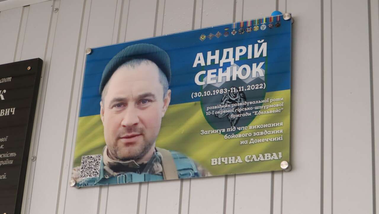 Сьогодні Андрію Сенюку, розвіднику 10-ї окремої гірсько-штурмової бригади «Едельвейс», виповнилося б 40 років. Але на жаль, для рідних, побратимів, знайомих та для усієї Коломийської громади цей день - тяжкий. Нашого воїна зараз немає з нами, його життя обірвалося під час виконання бойового завдання під Бахмутом у селі Берестове 11 листопада 2022 року. І щоб увіковічити пам’ять у ліцеї №4, де навчався герой, встановили йому меморіальну дошку, написав у фейсбуці міський голова Богдан Станіславський.